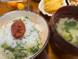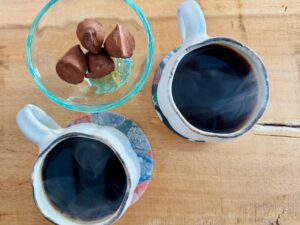 寒い朝ですが、建築中の東家でモーニング。前の日の作業の進み具合を見ながら、その日の計画を立てています。染め作業の合間に少しずつ進んでいます。寒いけど外は気持ち良い。気合いも入る^_^けど、全て、冷めるのか早くて、つい早食…